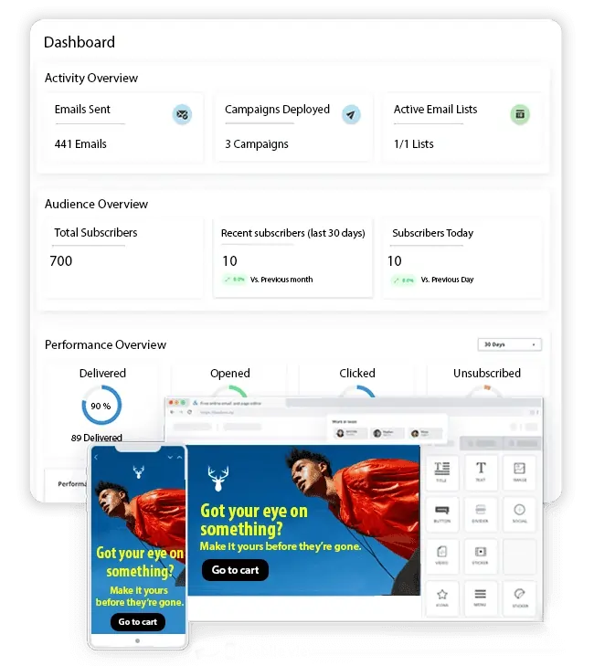 Design stunning, high-converting emails effortlessly with our intuitive drag-and-drop editor.